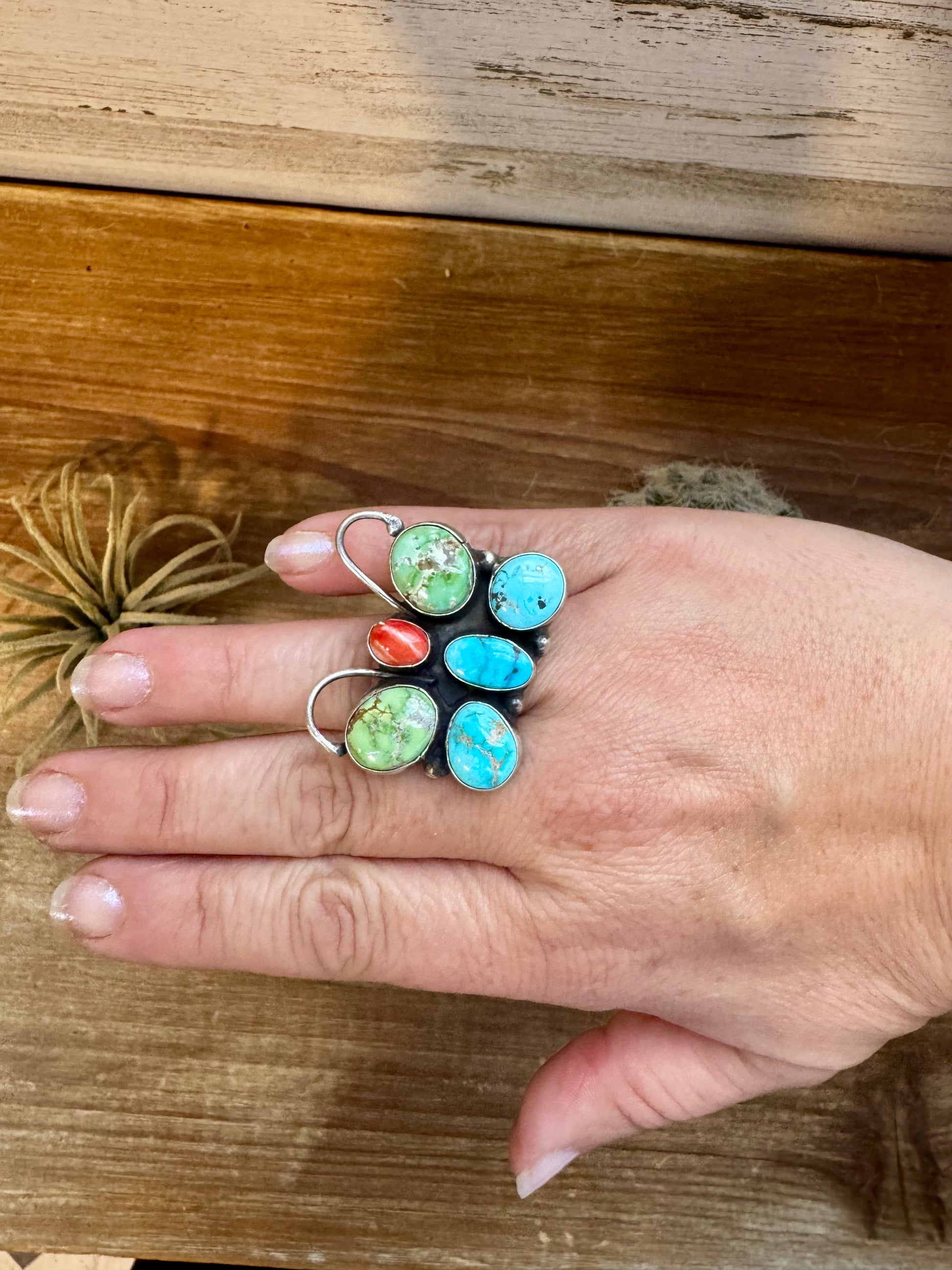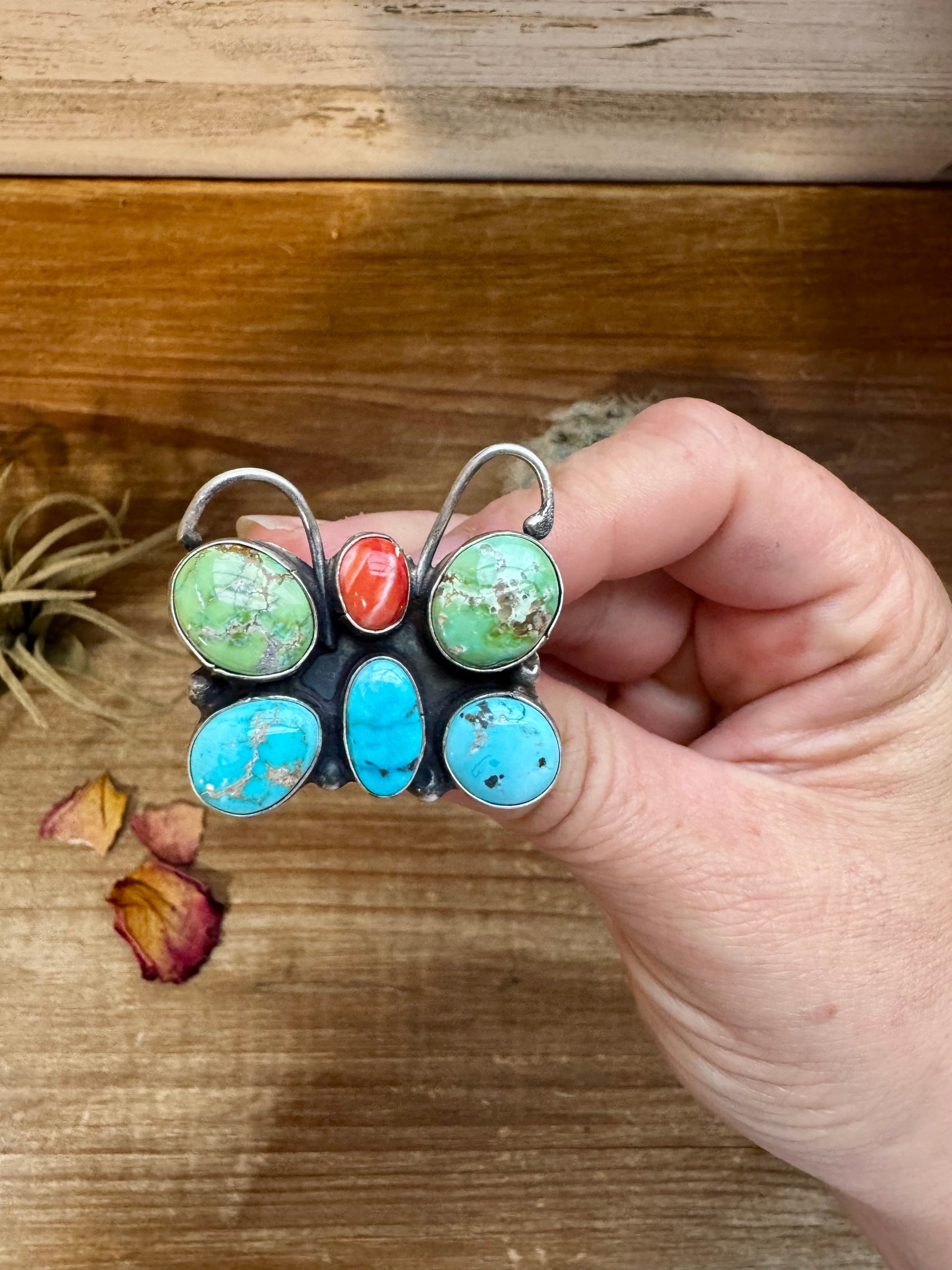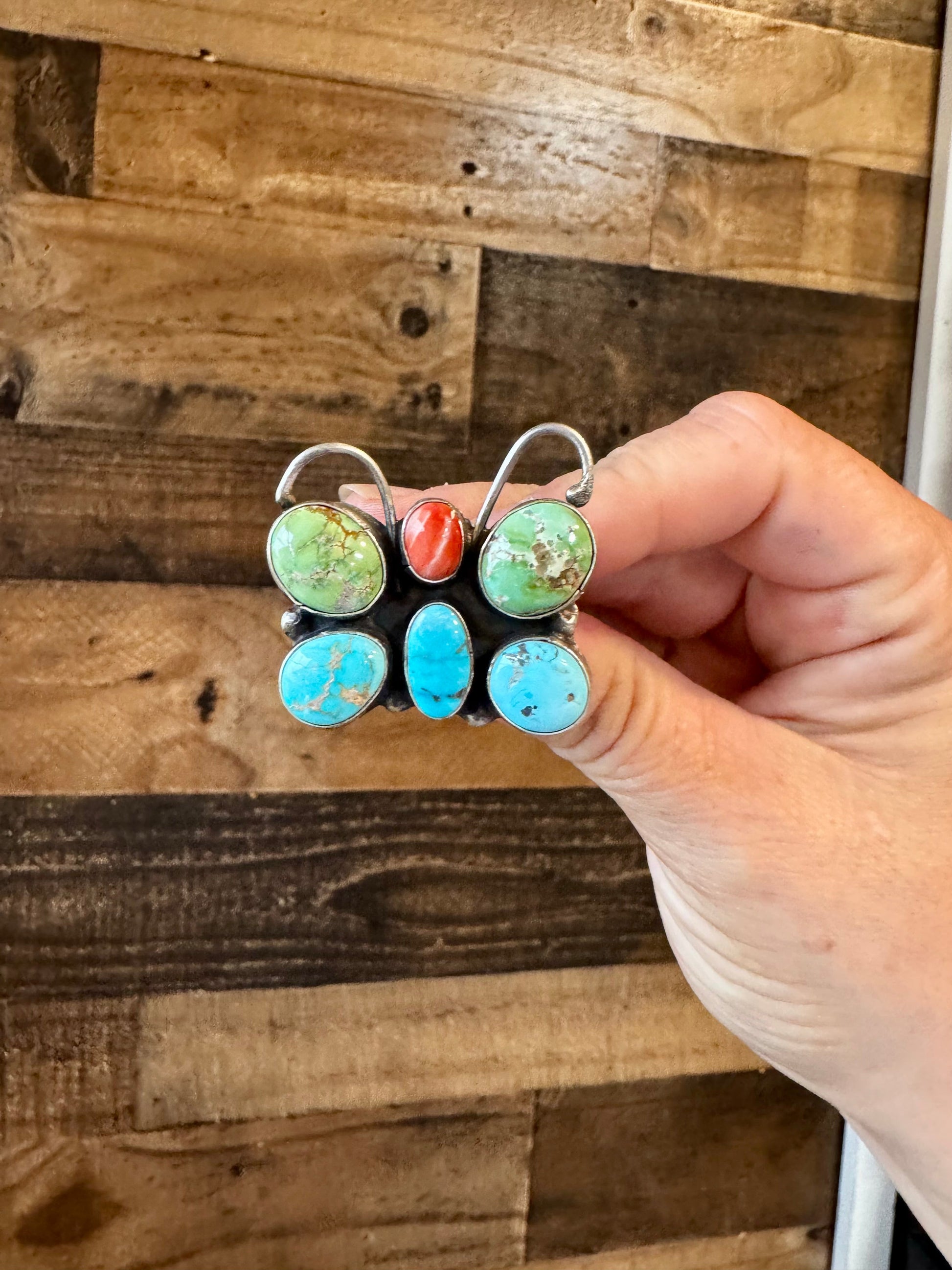 Butterfly Ring - Adjustable - Mix Stone & Sterling Silver