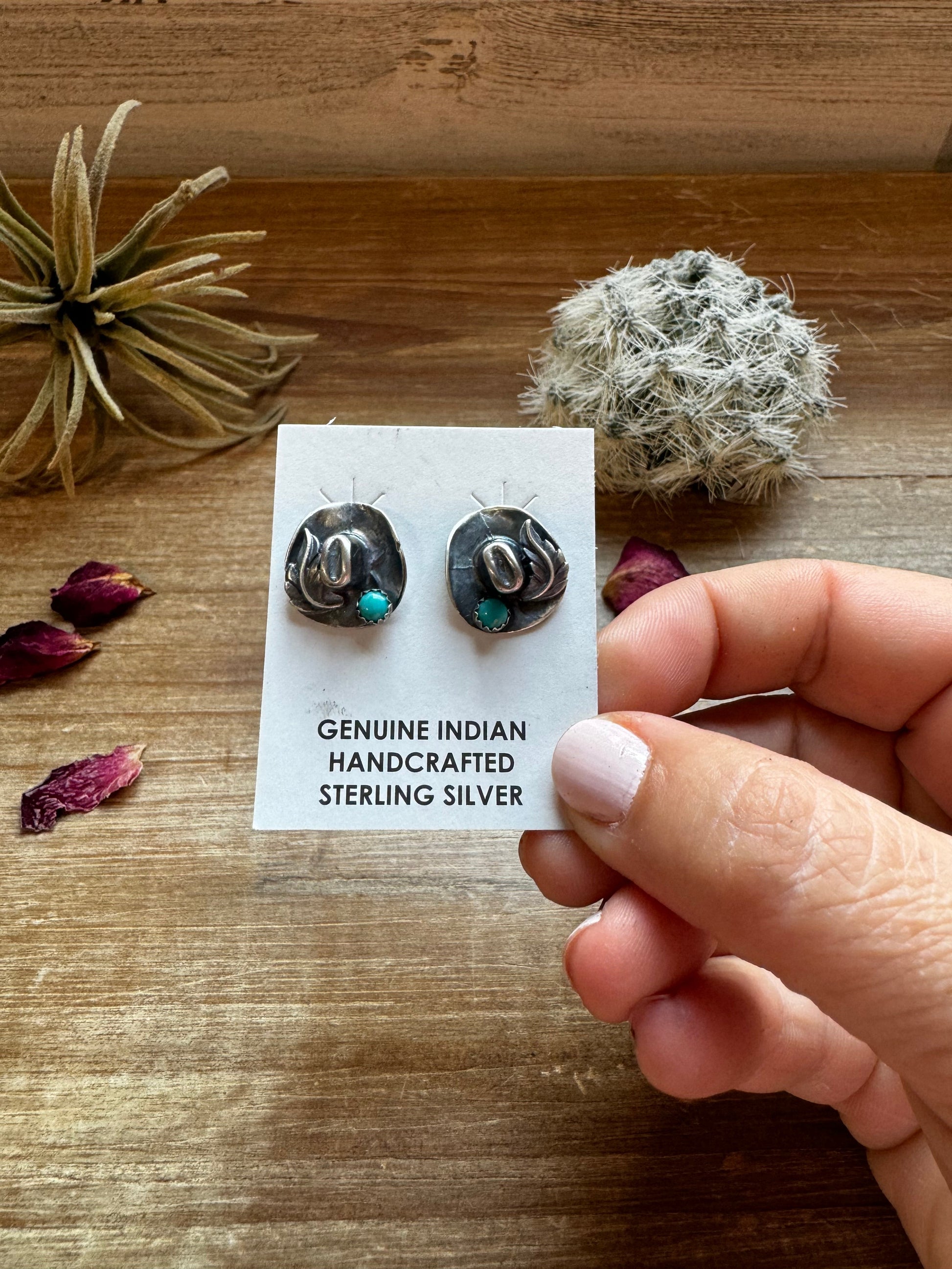 Cowboy Hat Stud Earrings with Kingman Turquoise