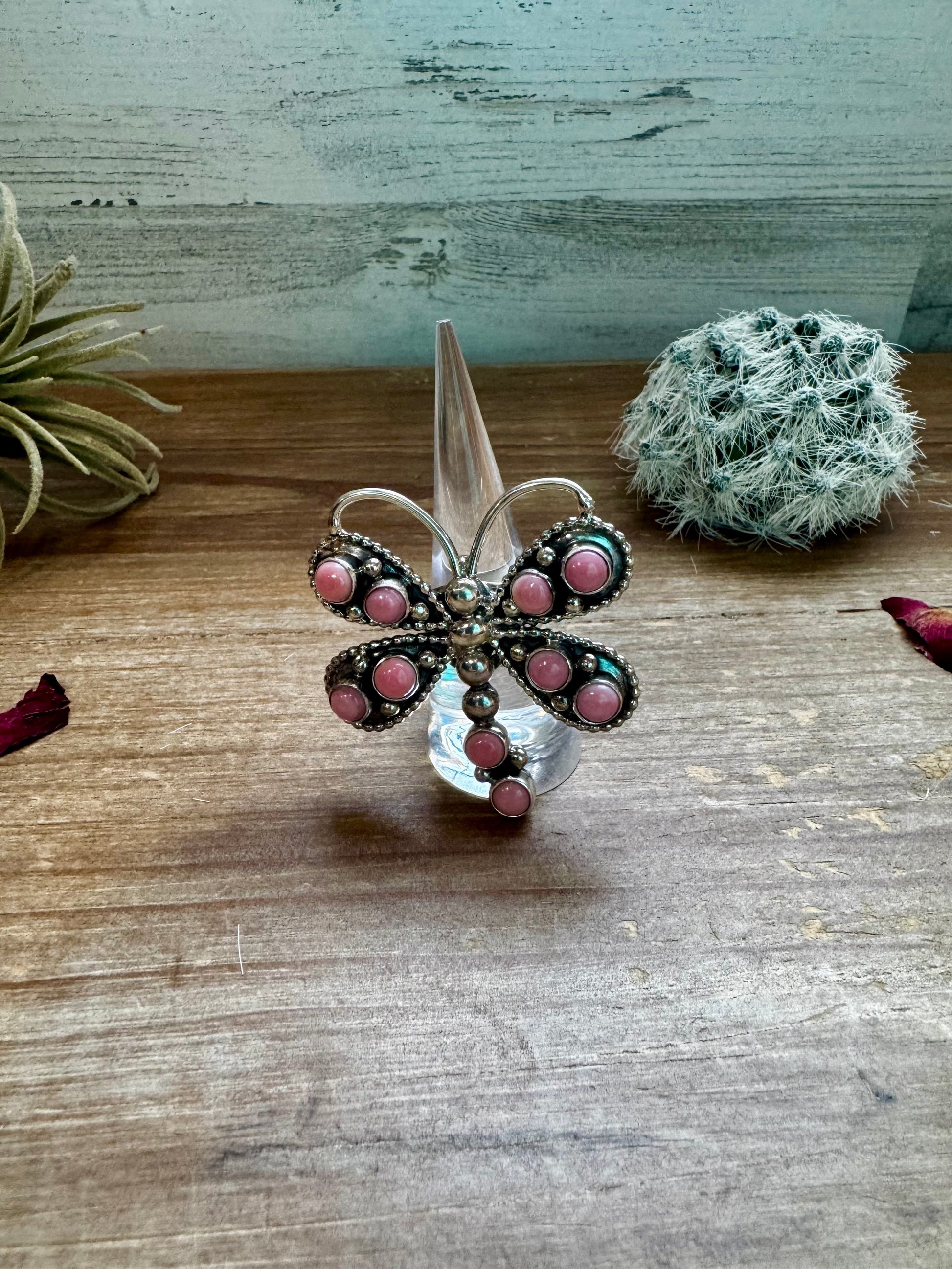 Pink Conch dragonfly ring - size 7 - stamped