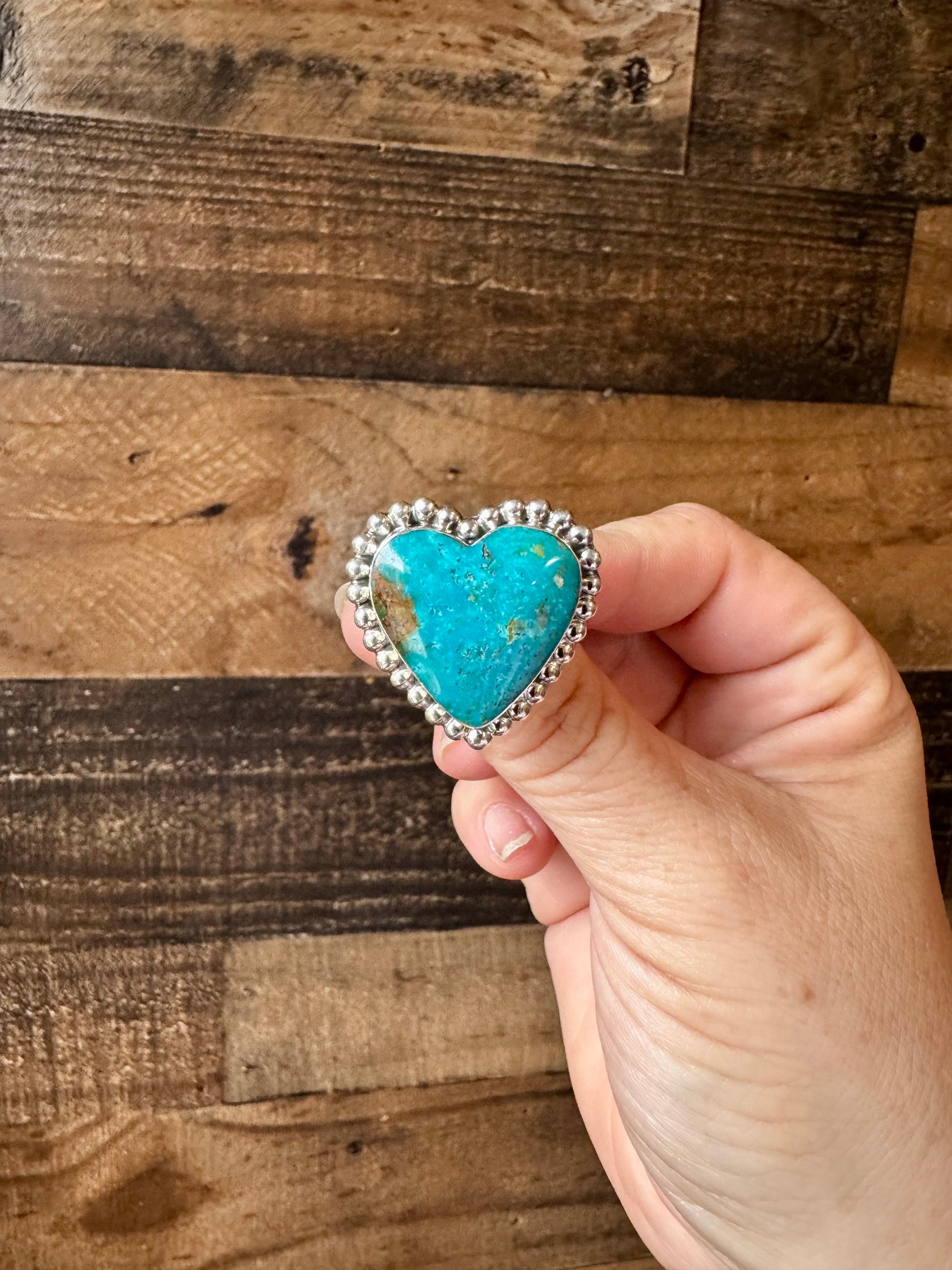 Heart Ring - size 8 - Kingman turquoise & sterling silver