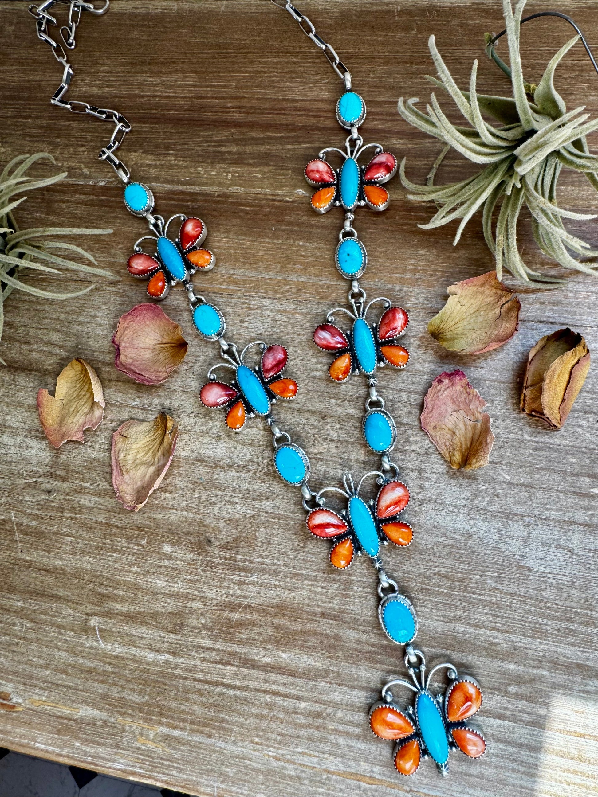 Massive Butterfly Necklace – Kingman Turquoise & Spiny Oyster – 32.5 Inch