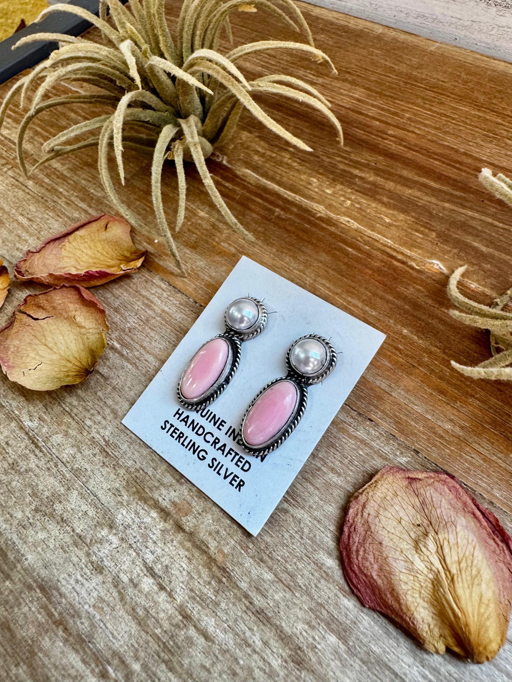 Mother of Pearl & Pink Conch Stud Earrings – stamped Marcella James