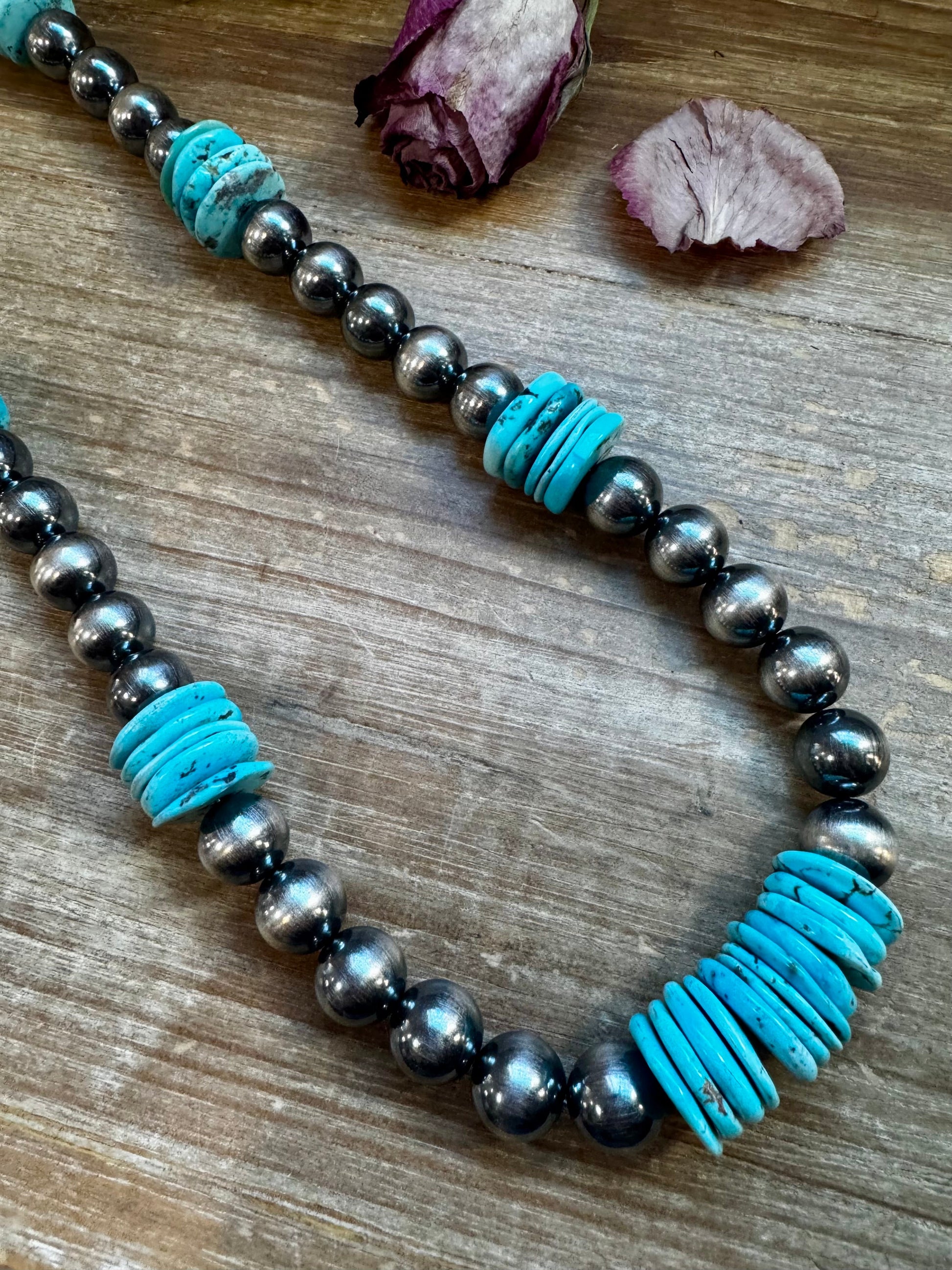 NFR Collection Necklace – 35 inch long 8mm & 14mm with 20mm Turquoise Rondelle