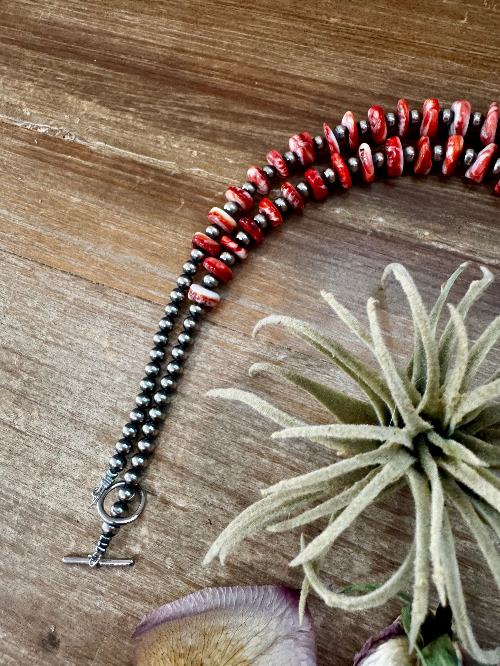 NFR Collection Necklace – 5mm Sterling Silver Pearls with Graduated Spiny Oyster - 37"