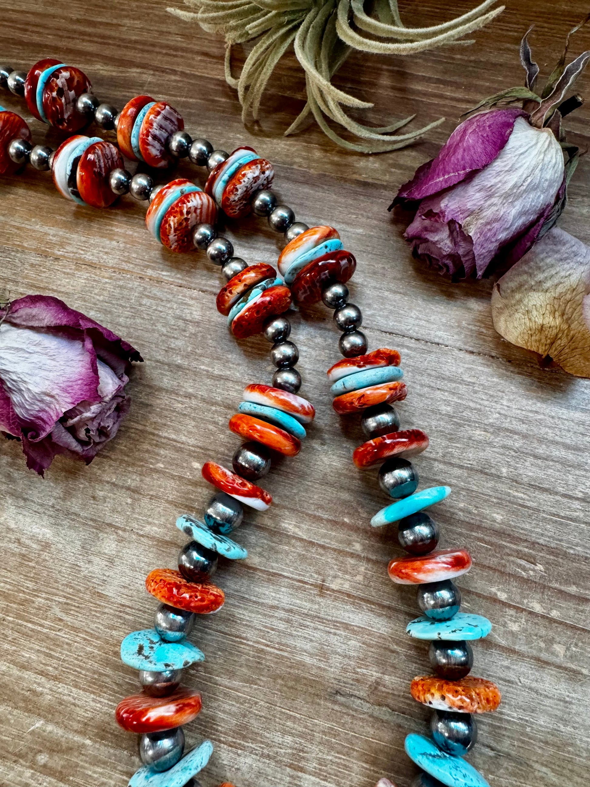 NFR Collection Necklace – 8MM to 20MM graduated with Turquoise & Spiny Oyster – 29"