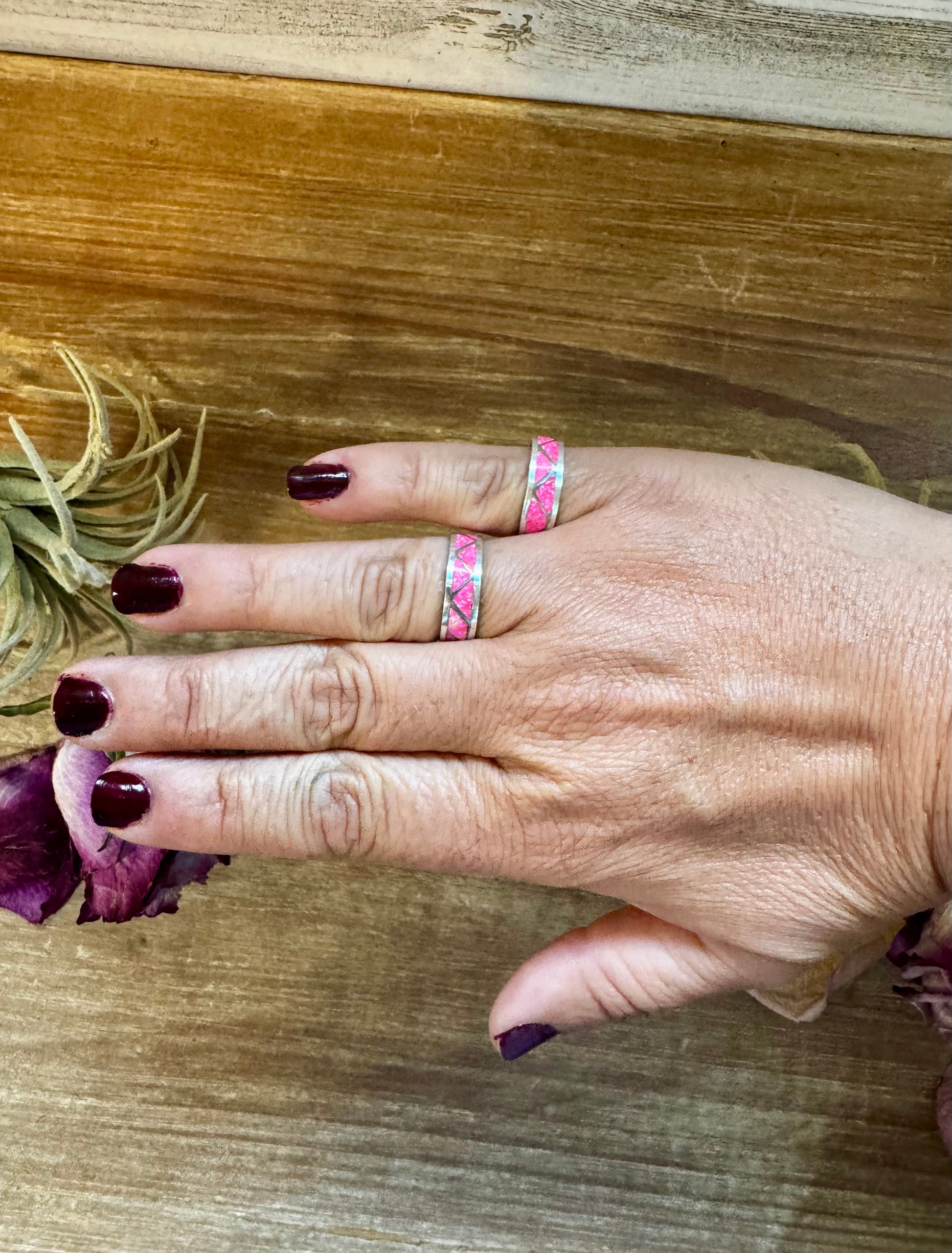 Pink Opal Inlay Band Ring – Sterling Silver – Sizes 6.5 & 7.5