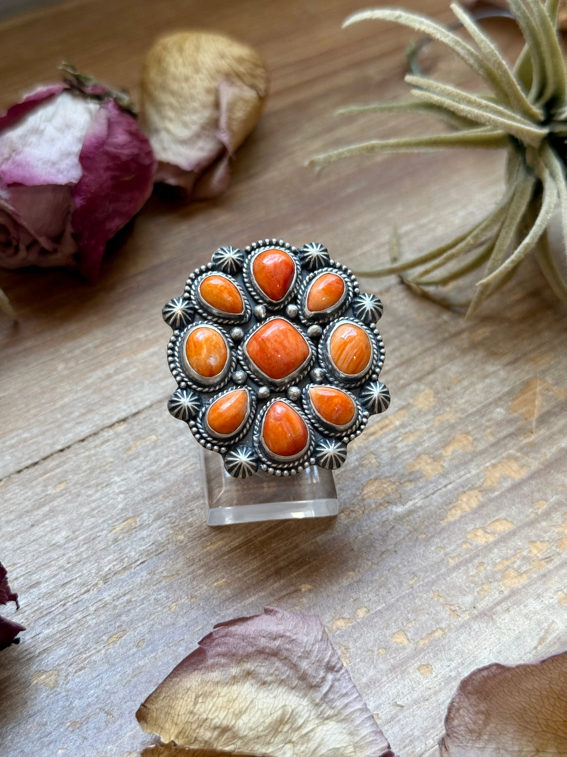 Orange Spiny Oyster Mosaic Cluster Ring - Size 7.5, Artist Shay Pfeiffer